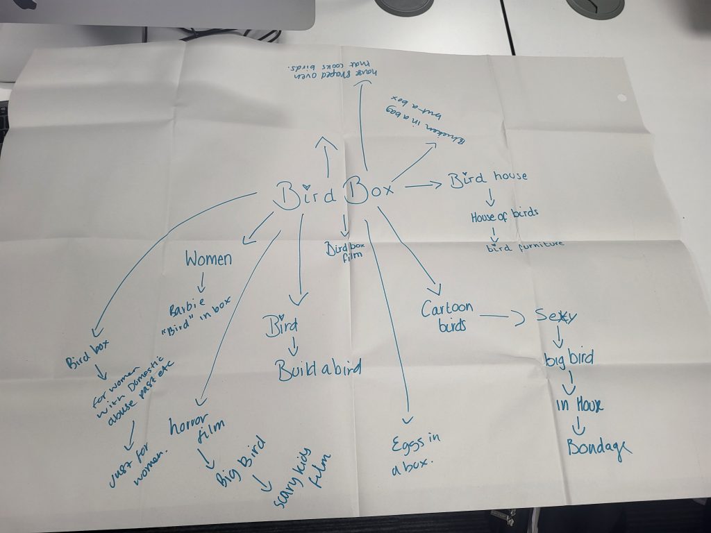 Following Chris giving the brief, we came together as a group of three to brainstorm ideas. I found the group dynamic to work effectively in terms of gathering different ideas, but felt it was easy to get distracted and off topic. This can effect the flow of ideas and in future I would try to stay focused and on the brief at hand rather than get distracted.