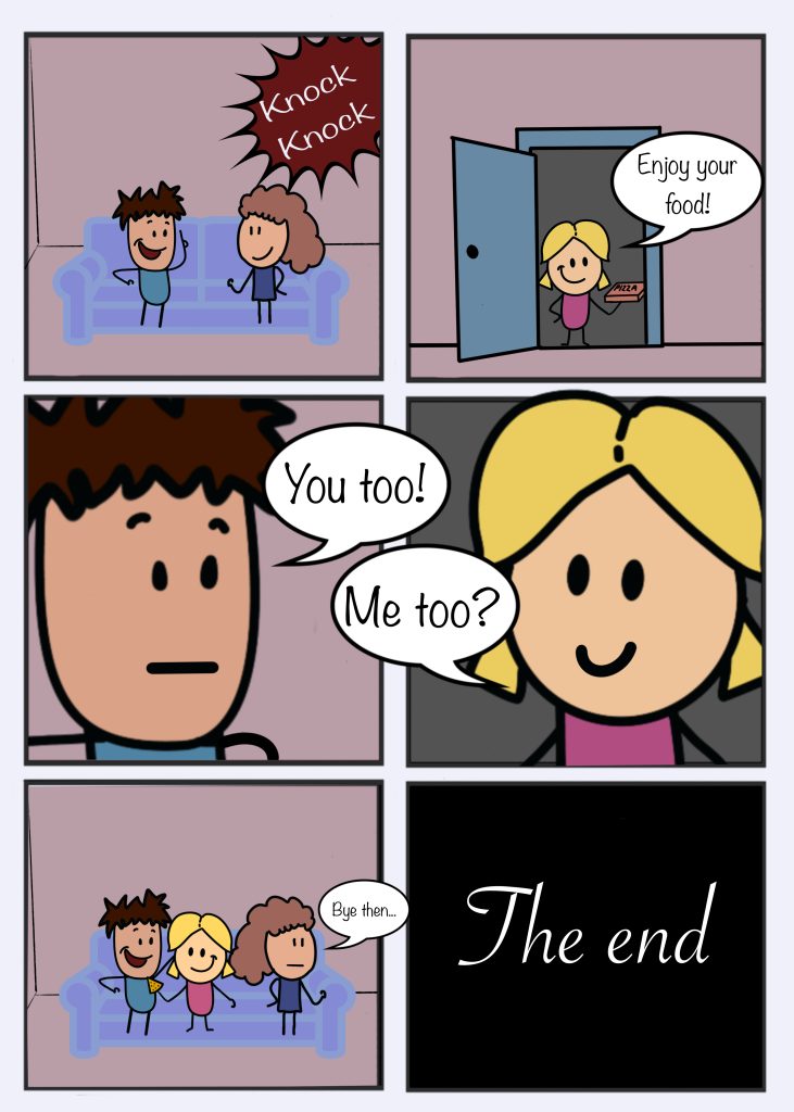 The above is my sequence for this assessment. I decided to go more towards the light hearted side of things and focus on the embarassing moment of syaing you too when someone tells you to enjoy your food. This scenario is played on quite a lot on social media patforms such as TikTok and Youtube shorts.