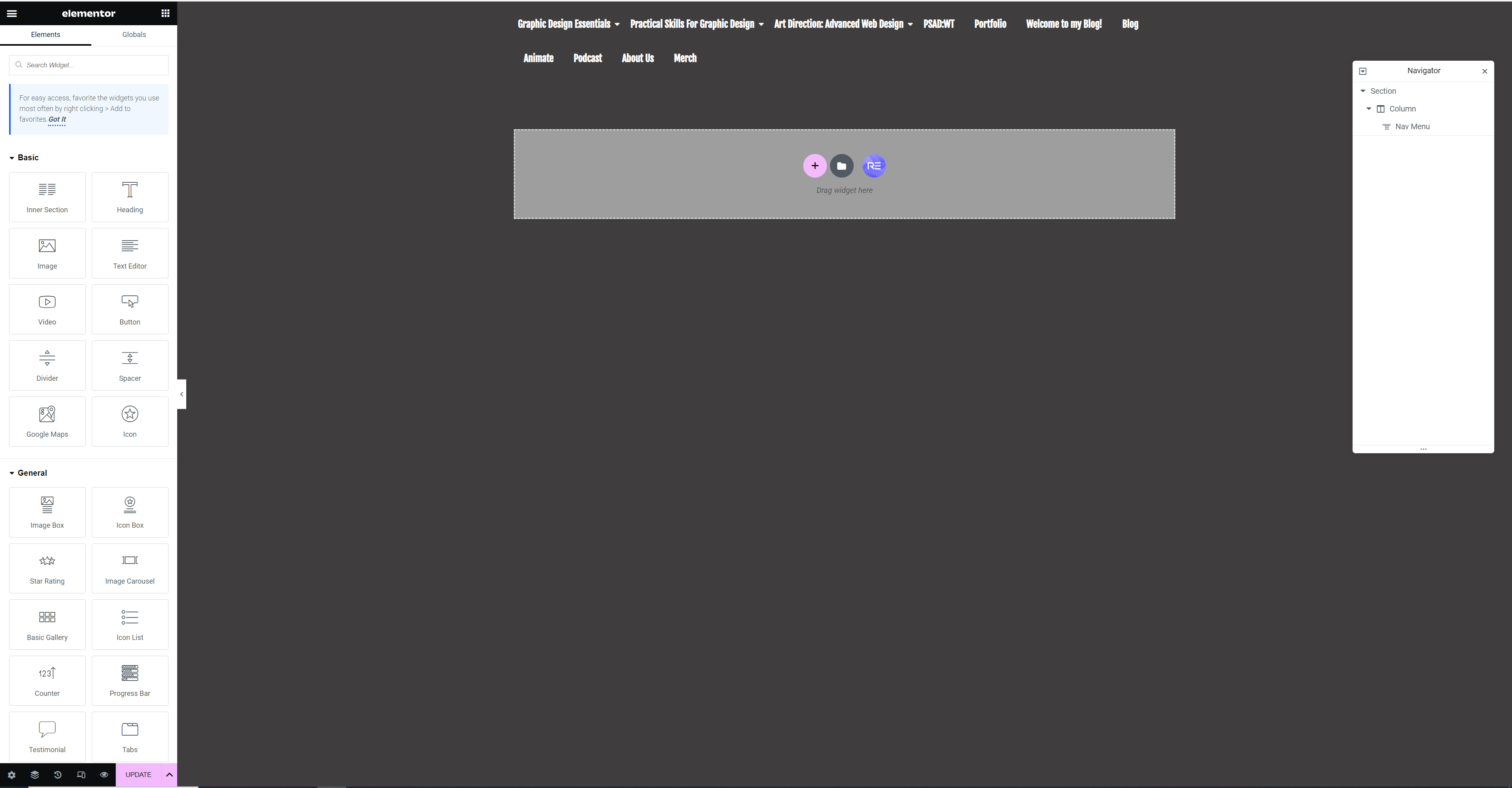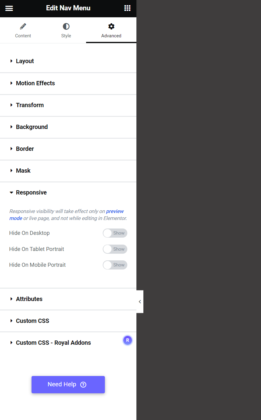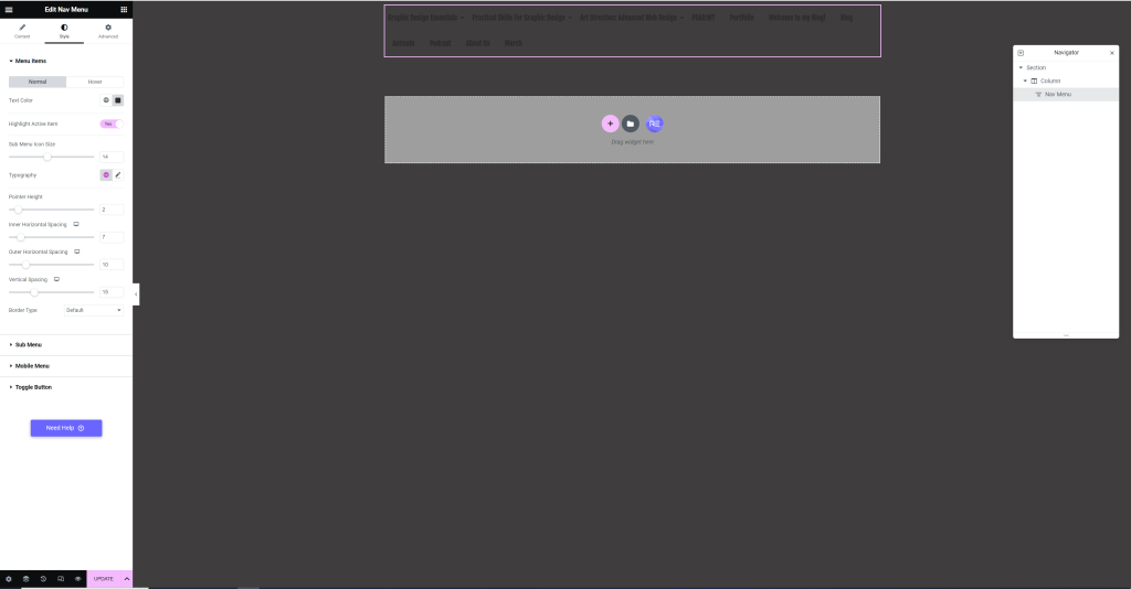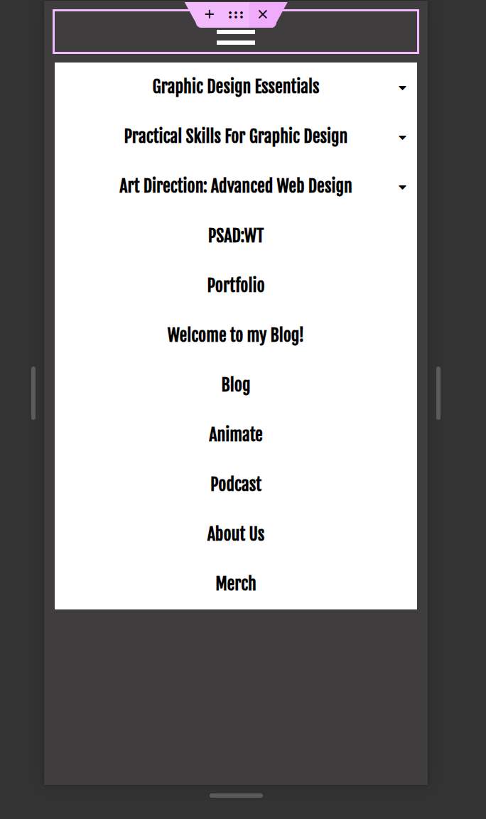 We were then told to add a ‘NAVMENU’, from Royal Addons, and practice using the hamburger menu in responsive mode.