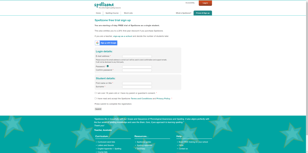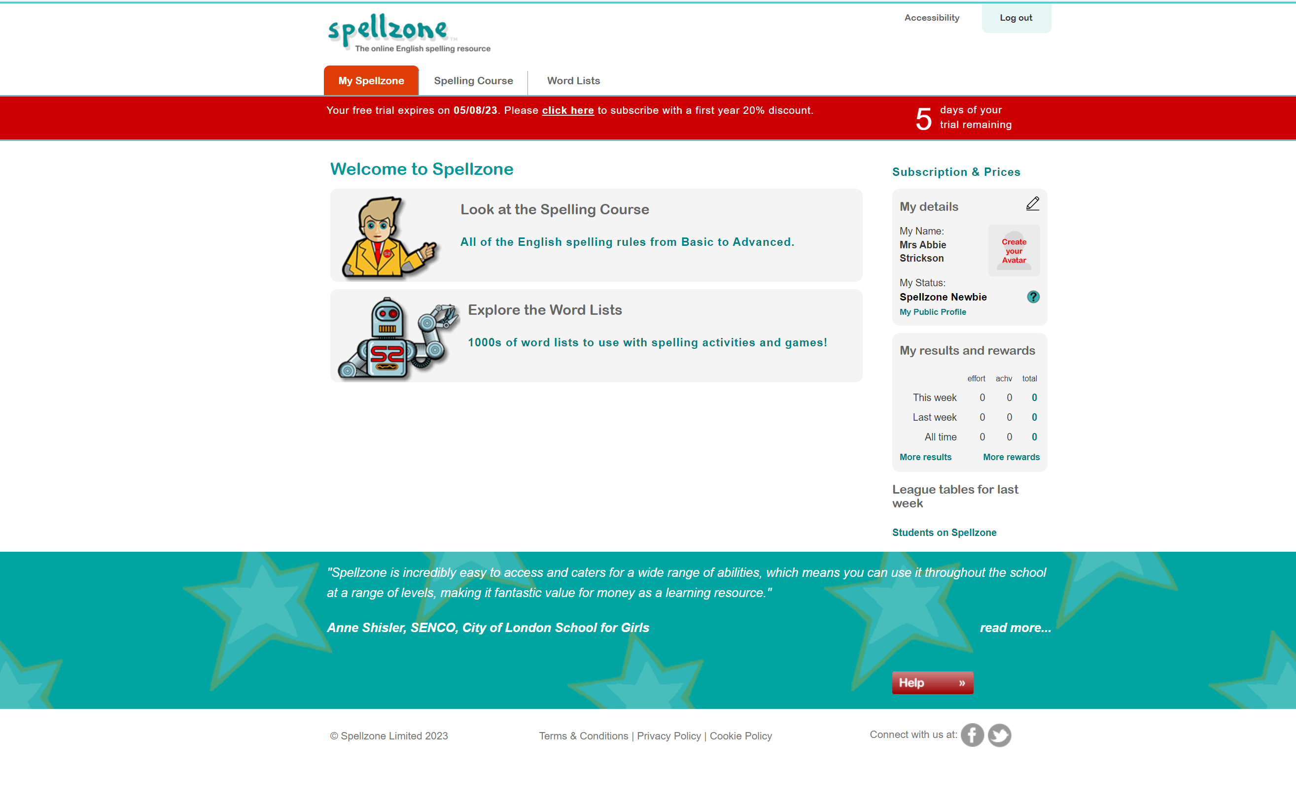 Spellzone is an online learning platform that specialises in teaching spelling to a range of abilities, with the level being calculated at onboarding through data entry. By giving users a spelling test when they register to gauge their ability, it ensures that the site is accessible to more users by changing depending on ability. This allows users to improve their spelling through methods that are not too advanced for them, and in turn ensures more users can benefit from the website.