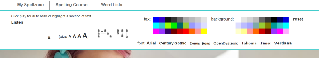 The onboarding process of creating a member log in and having the user take an ability test to customise their experience on the site, allows the user to get a more specific learning experience, making it easier for them to get appropriate spelling education. The site also has the option of being able to change the font size, colour and background depending on your accessibility needs, which makes the website even more accessible.