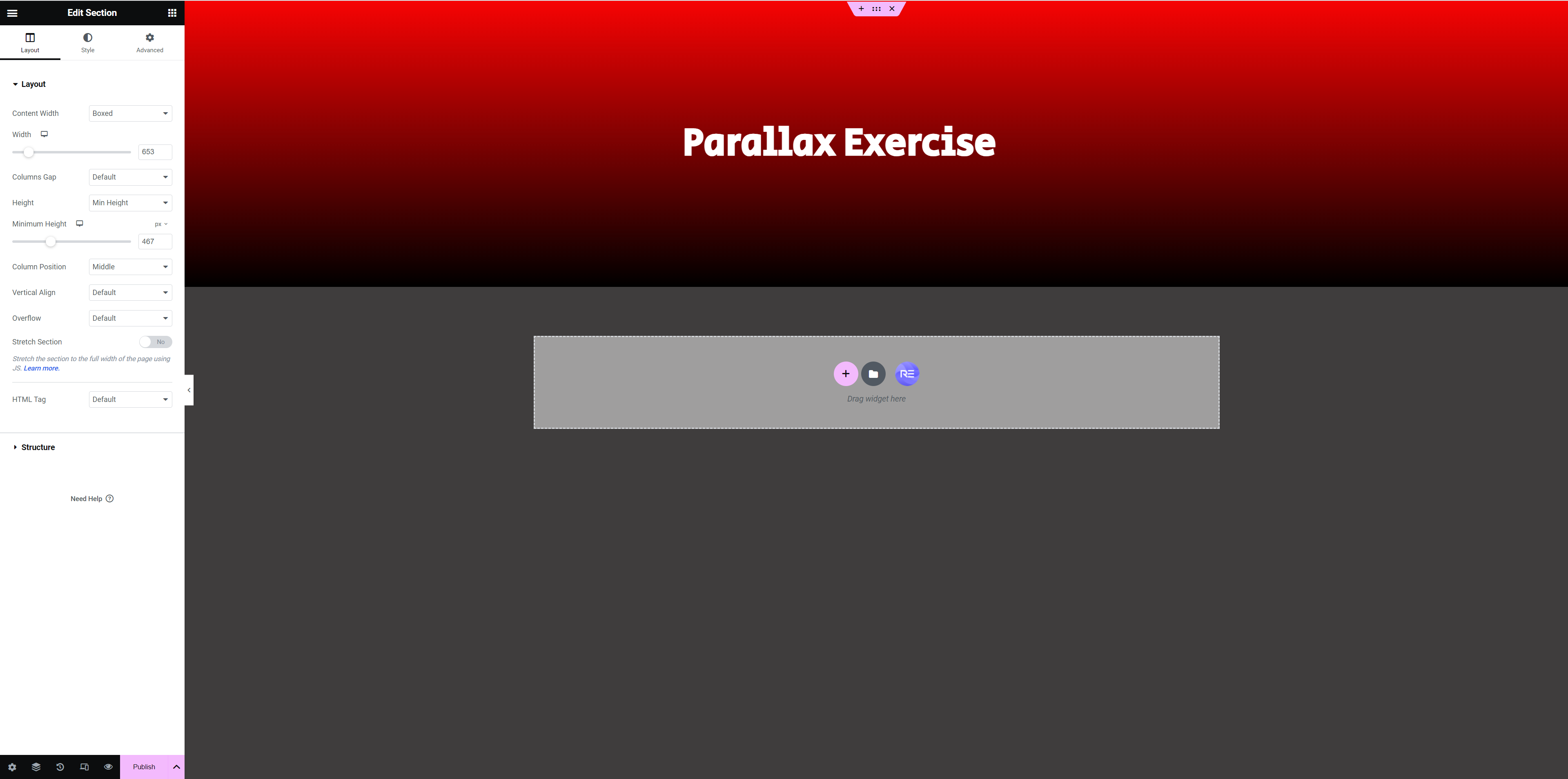 Add a section heading called Parallax Exercise.