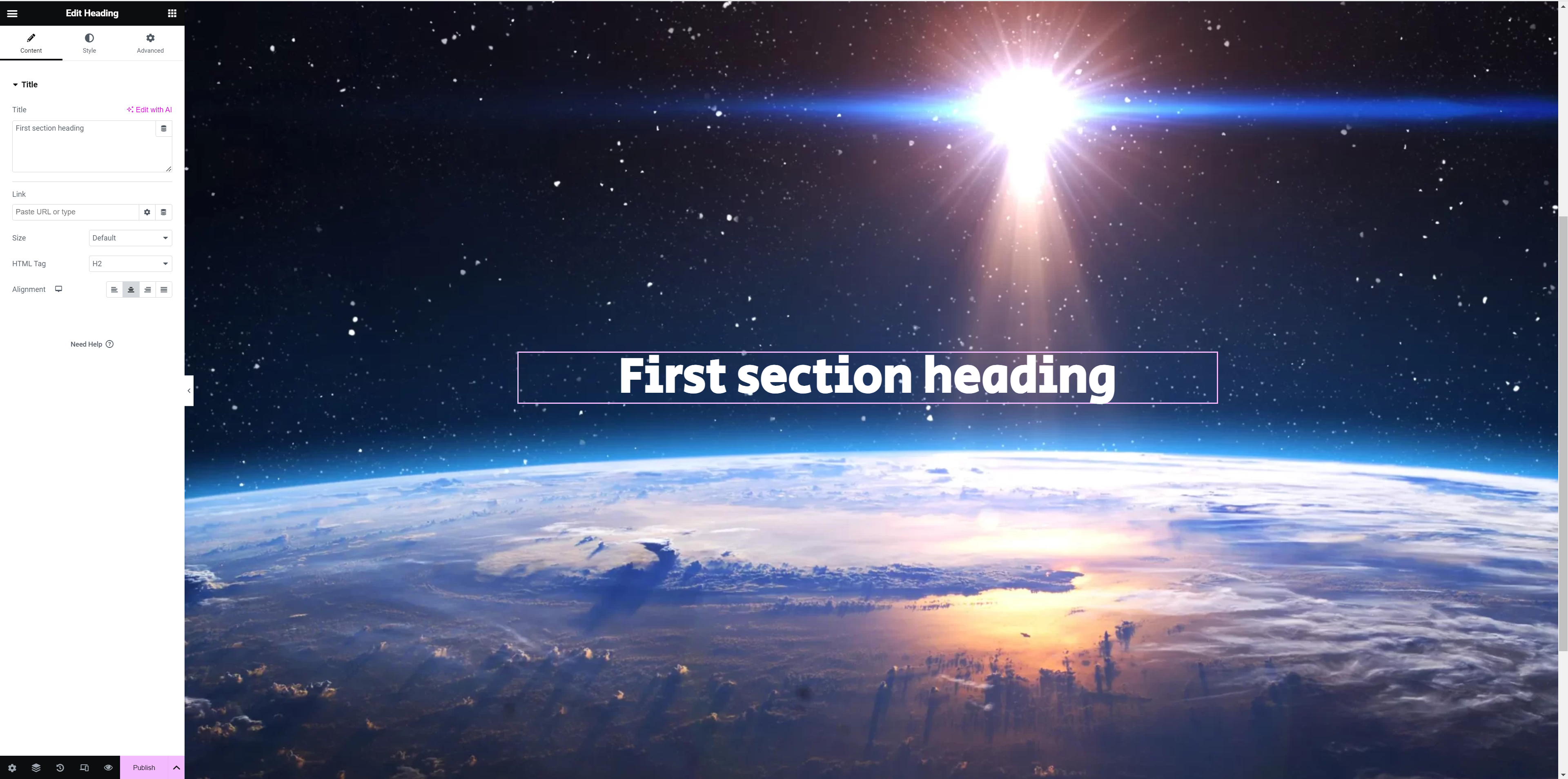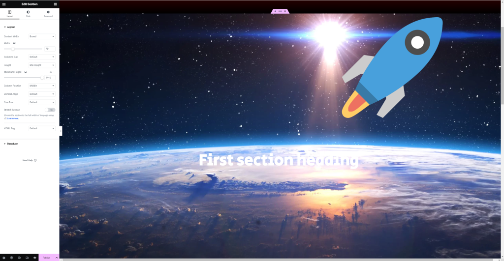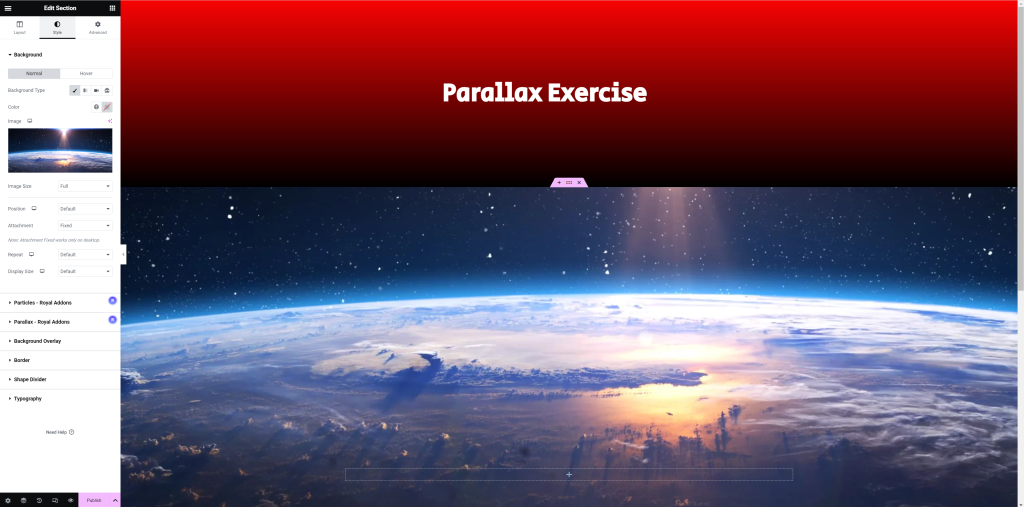 For this exercise, we were told to create a new Elementor page, and given files to use to create our own parallax.