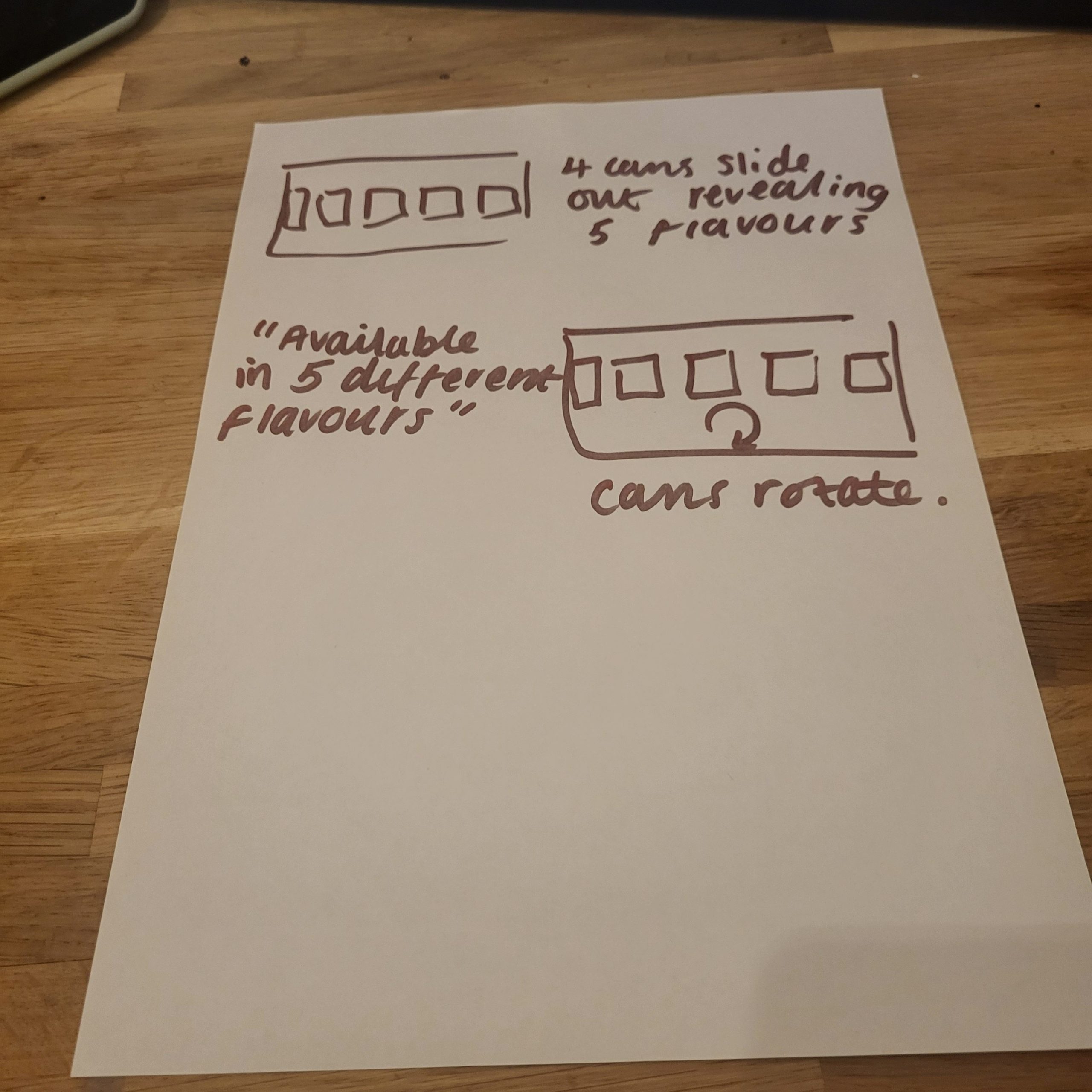 Finally, the cans rotate to show the entirety of the packaging and brand.