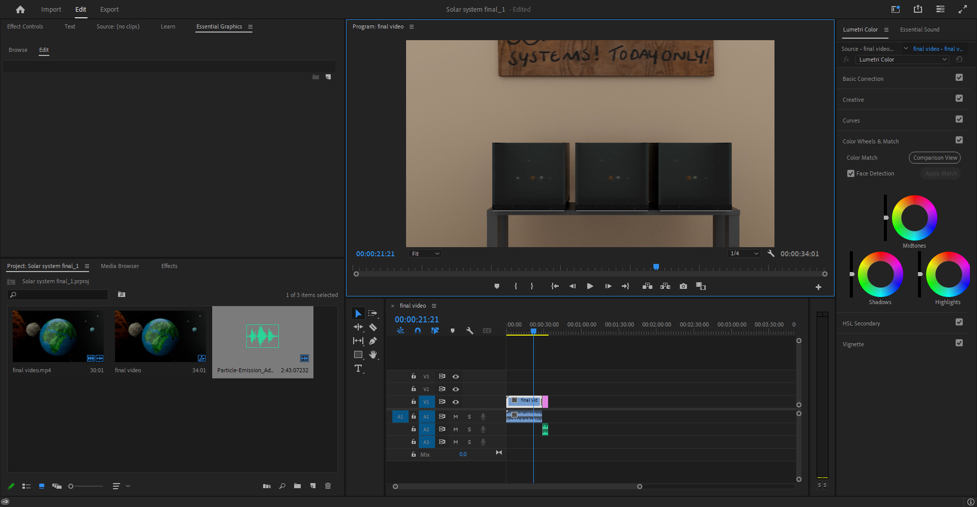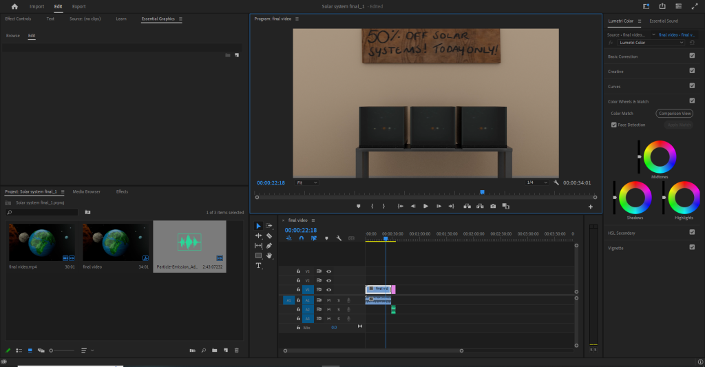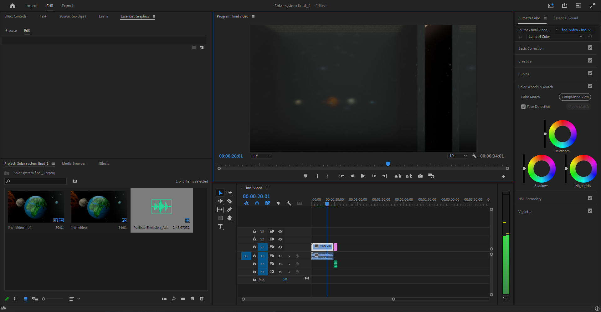 For use of colour, I ensured that I used the colour as a noun, so blue is water, green is land for my render of earth. I also used a texture that had varying shades for each to try and represent depth and give the Earth a more life-like look. I decided to use a brighter green and blue, to signify that Earth was the main focus point for this part of my animation.